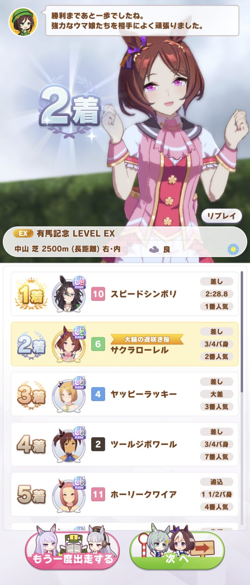 やはり有馬はローレルさん強いか……(対抗してくるのがほぼ差し1人だけ、という特殊環境ですが。
