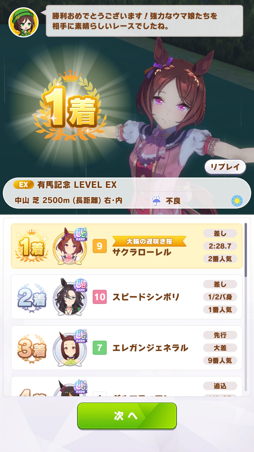 やはり有馬はローレルさん強いか……(対抗してくるのがほぼ差し1人だけ、という特殊環境ですが。