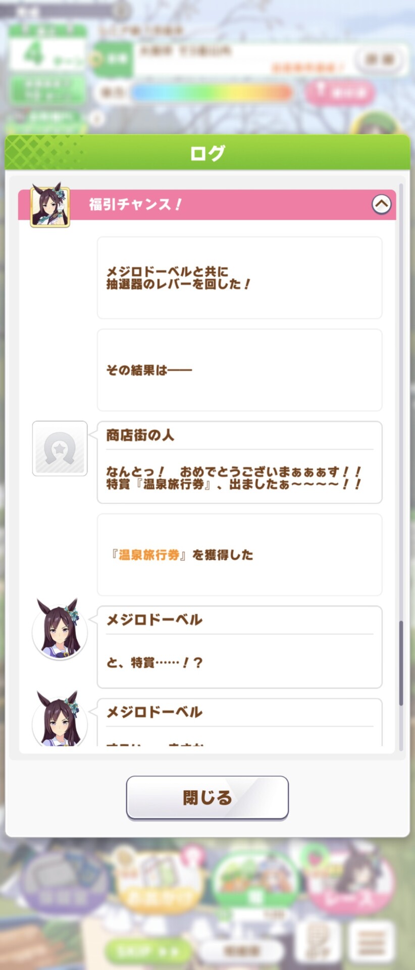 明日の昼でヘリオスとルビーが終わってしまうので、なけなしの800個弱の石を1回ずつで合計5回回したら、やたら言い回しが独特で饒舌だったり、男性が苦手だったりしますが差し追込脚質なのでこれはルビーさんですね……?後者に至っては牝バですし……???(ぐるぐる目